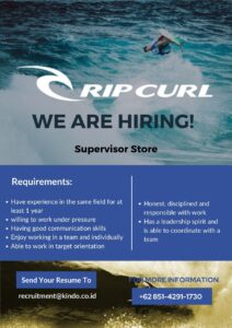 LOWONGAN RIP CURL Go Back Share Facebook Twitter LinkedIn LOWONGAN RIP CURL Description DOWNLOAD FOTO UNTUK INFO LENGKAP. Contact Information Perusahaan RIP CURL